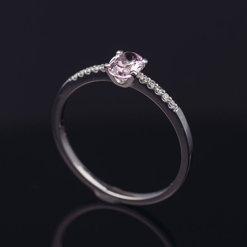 Zásnubný prsteň z bieleho zlata s morganitom a briliantami/diamantami