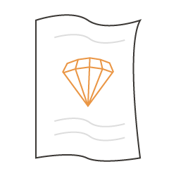 Ku každému prsteňu získate certifikát pravosti diamantu, ktorý obsahuje pôvod diamantu jeho hmotnosť v karátoch (ct), kvalitu, farbu a výbrus diamantu.